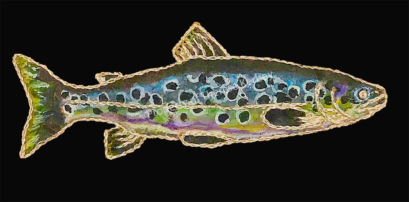 On this page, I am featuring only the watercolor trout that I have created for now. If you scroll the designs below, you can double-click on any that you like and you will be taken to an online store that will print it on a t-shirt, computer or phone case, tote bag, coffee cup. wall hang, etc. You can also click "Go To Site" here to go directly to the store. The merch is quite affordable if you snag it during the site's many sales!